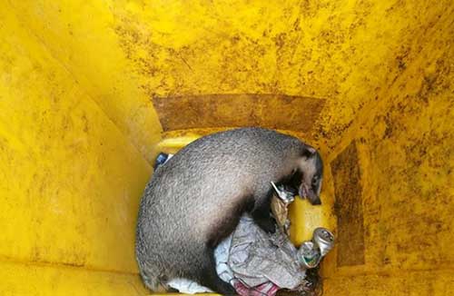瀕危“狗獾”被困垃圾桶