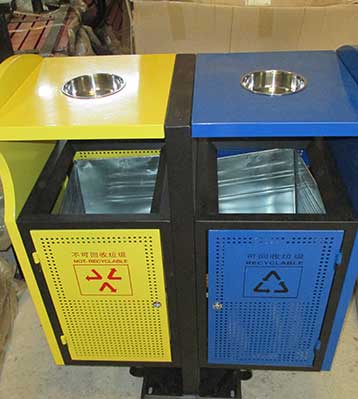 欣方圳鋼制分類環(huán)保垃圾桶工廠成品展示