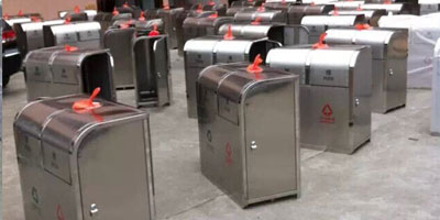 不銹鋼垃圾桶是一種存放垃圾的容器,使用不銹鋼制作而成。因為不銹鋼耐空氣、蒸汽、水等弱腐蝕介質和酸、堿、鹽等化學浸蝕性介質腐蝕,所以不銹鋼垃圾桶耐用性高。全身不銹鋼制作的垃圾桶還具有防火功能,堅固耐用。 材質:不銹鋼常按組織狀態分為:馬氏體鋼、鐵素體鋼、奧氏體鋼、奧氏體-鐵素體(雙相)不銹鋼及沉淀硬化不銹鋼等。另外,可按成分分為:鉻不銹鋼、鉻鎳不銹鋼和鉻錳氮不銹鋼等。